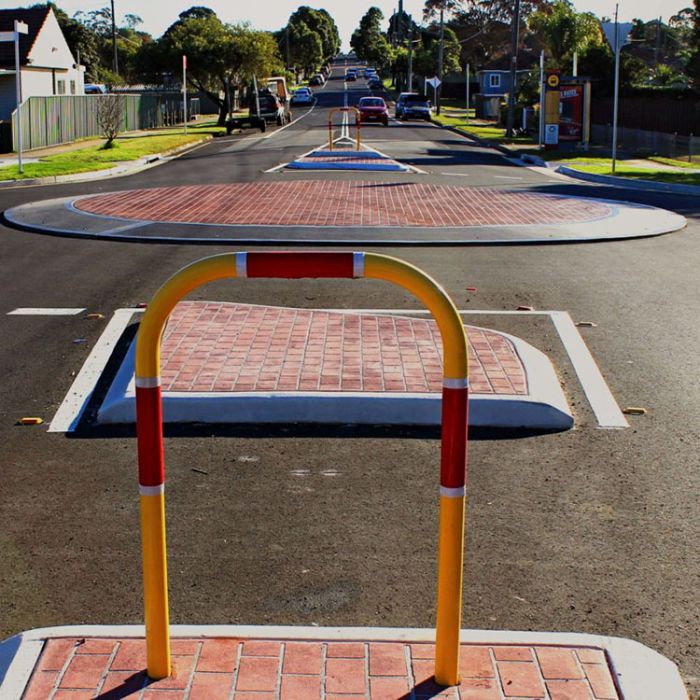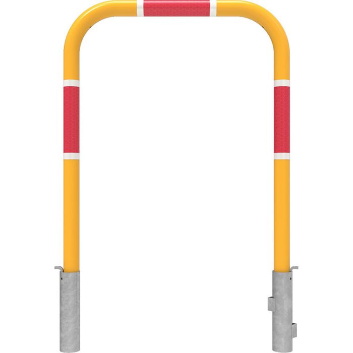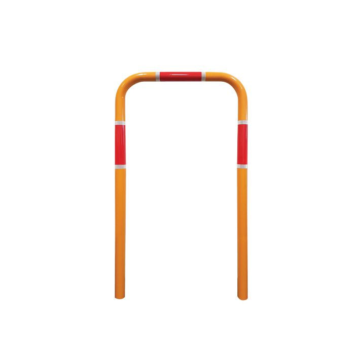 Holding Rails are widely used in traffic islands at roundabouts, crosswalks, and bike lanes for pedestrians and cyclists. The rails are hot dipped galvanized prior to yellow powder coating and features red and white reflective bands. Can be used for in-situ concrete islands with Vlocks.